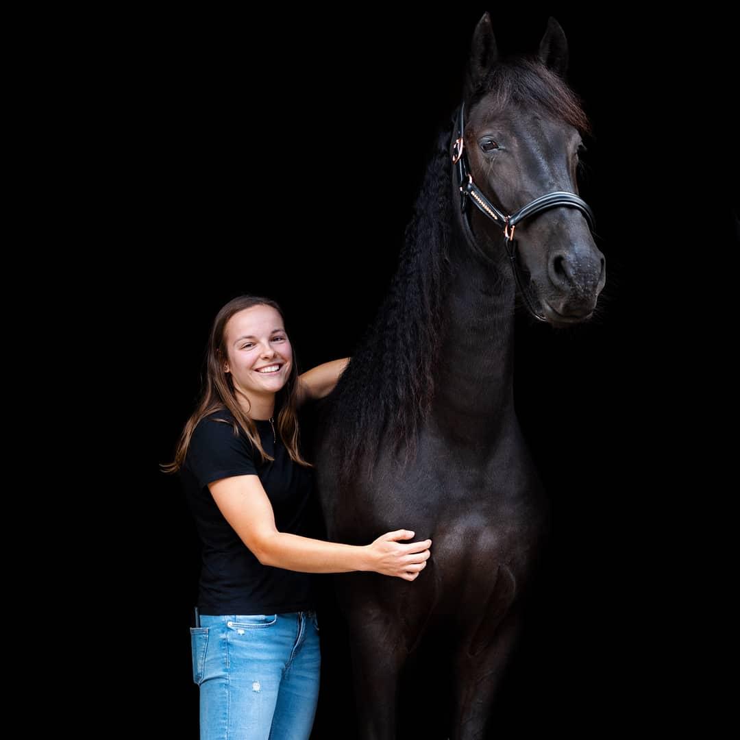 Thuis gaat de dierenliefde gewoon door: knuffelen met haar katten Nestor, Flor en Caramel en lange wandelingen maken met haar paard Jitske, samen met haar vriend.